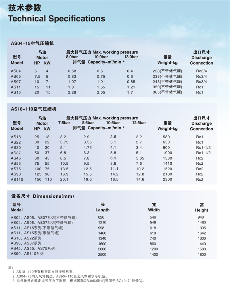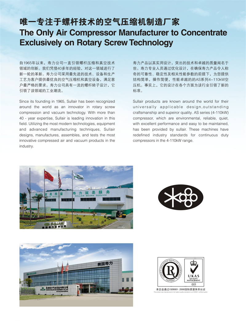 美國壽力AS04-AS110系列福建廈門螺桿空壓機(jī)
