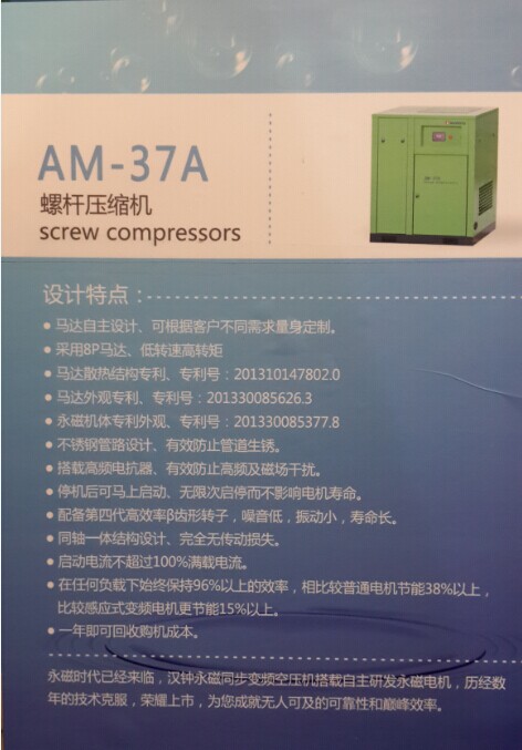 漢鐘精機(jī)做為國(guó)內(nèi)流體機(jī)電產(chǎn)業(yè)的領(lǐng)導(dǎo)者,此次參展的產(chǎn)品有工頻螺桿式空壓機(jī)、變頻螺桿式空壓機(jī)、永磁變頻螺桿式空壓機(jī)、以及漢鐘機(jī)頭;其中永磁變頻螺桿式空壓機(jī)的超級(jí)節(jié)能為眾多參展客戶所吸引。