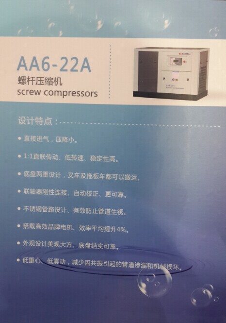 普通工頻螺桿式空壓機(jī),不銹鋼管設(shè)計(jì),不易腐化漏油,1:1直聯(lián)傳動(dòng)